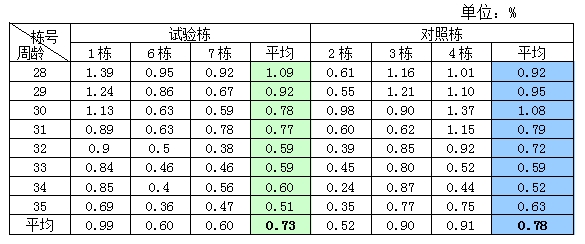 试验从26周开始,,前两周产蛋率波动较大,,对结果判断有影响,,,所以从28周开始计算。。