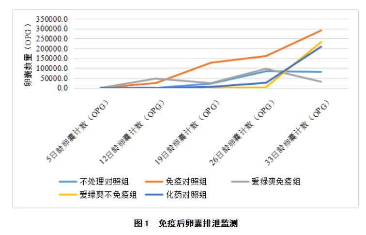 免疫对照组在监测期间卵囊排量一直处于上升趋势,,,可能受外界球虫的侵袭和堆型艾美耳球虫强繁殖力影响,,,堆型艾美耳球虫免疫力的建立延后。。。