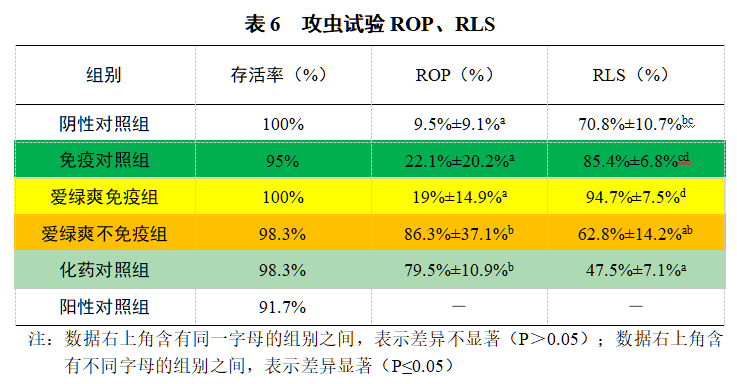 3.2.2 存活率、、、、相对卵囊产量(ROP)、、病变记分减少率(RLS)。。。。