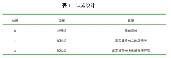 本试验选用60周龄的海兰褐蛋鸡480只,,,,随机分为3个处理组,,每个处理组8个重复,,每个重复20只鸡,,,,试验设计见表1。。。。