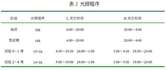 光照程序见表2,,,其它管理按照德青源常规管理进行。。