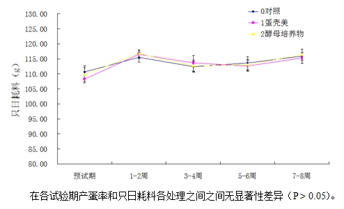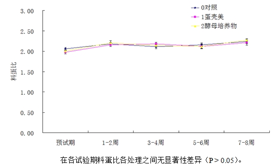 2.1  添加蛋壳美和酵母培养物对生产性能指标的影响