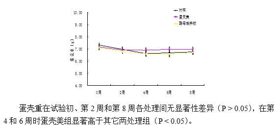 本试验营养水平和饲养条件下,,蛋鸡日粮中添加0.02%蛋壳美在应激条件下能够提高蛋壳厚度、、、蛋壳重量和蛋壳蛋重比。。蛋壳美在一定条件下能够提高蛋壳厚度、、蛋壳重量和蛋壳蛋重比,,,,对血液生化指标无显著影响。。